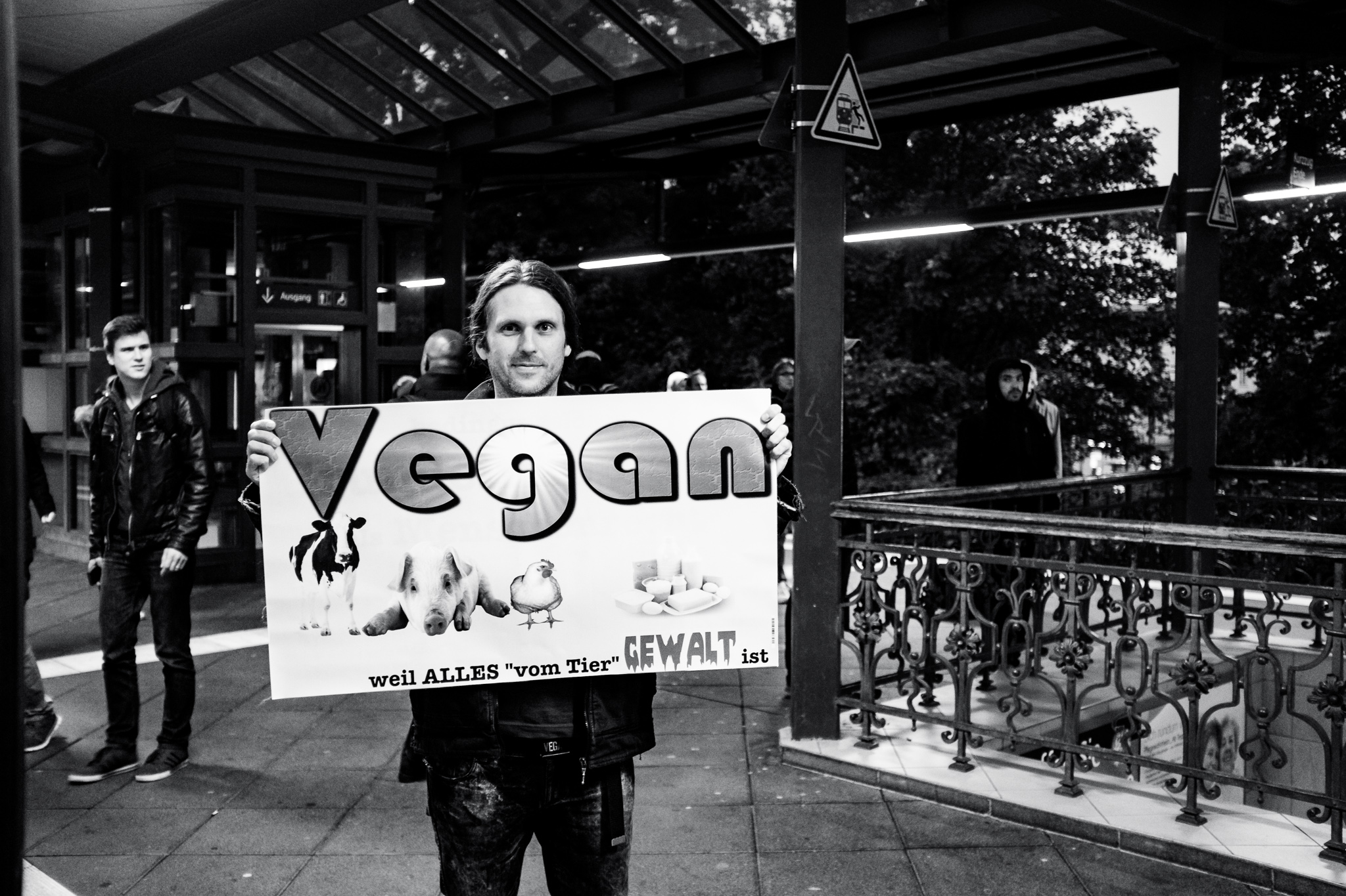 Tag 74 - BLN Vegan // Manchmal muss man auch einfach ein wenig Glück haben und dann entstehen solche Bilder. Ich hatte den Herren schon in der S-Bahn wahrgenommen, hatte aber leider durch die vielen Menschen keine freie Sicht. Als der Mann dann ausstieg blieb er kurz stehen, ich hob meine Kamera und er lächelte nach einen kurzen Blickkontakt sogar ein wenig in die Kamera.