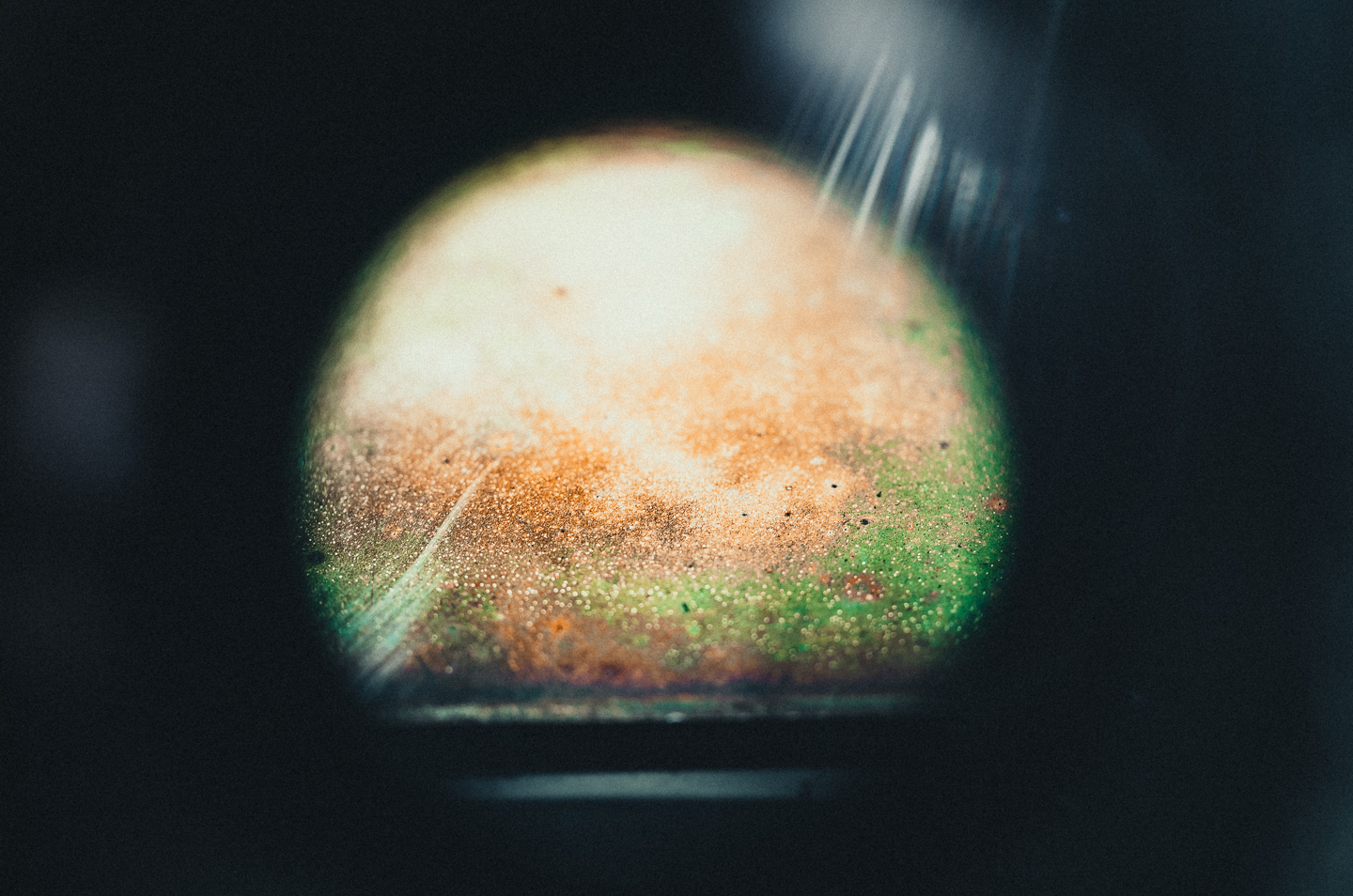 Nach dem ich ein paar Schrauben gelöst habe, lächelte mich auch schon der Oberflächenspiegel an. Dieser musst über die ganzen Jahre allen möglichen Widrigkeiten über sich ergehen lassen und im Falle der bei Welta Reflekta II verwendeten Silberdampfbeschichtung der Oxidation an der Luft preisgegeben.